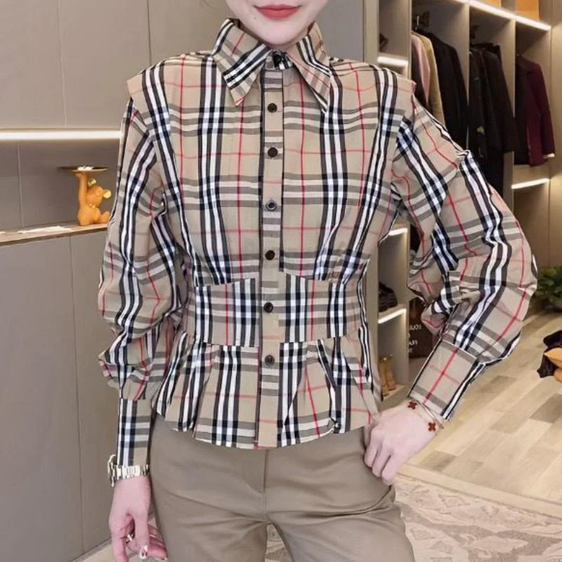 New Fashion Leak Shoulder Plaid Fake Two-piece Shirt 1024050705