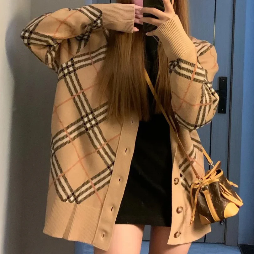 New fashion plaid unisex cardigan sweater jacket 1024102126