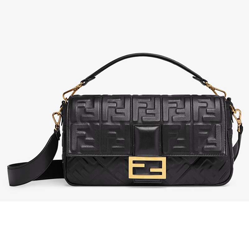 Fendi Women Baguette Large Leather Bag Lambskin All-Over FF