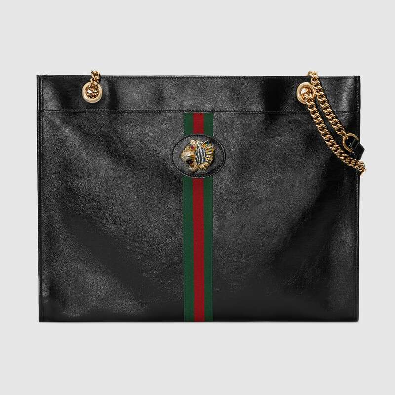Gucci GG Women Rajah Medium Shoulder Bag in Leather with Tiger Head