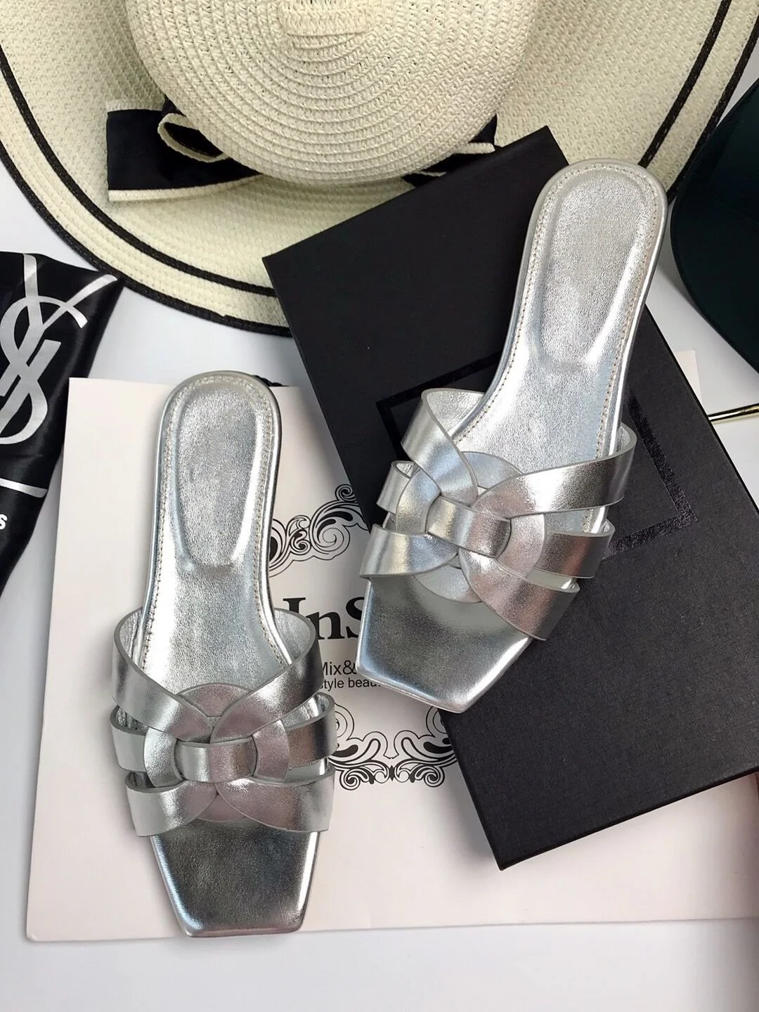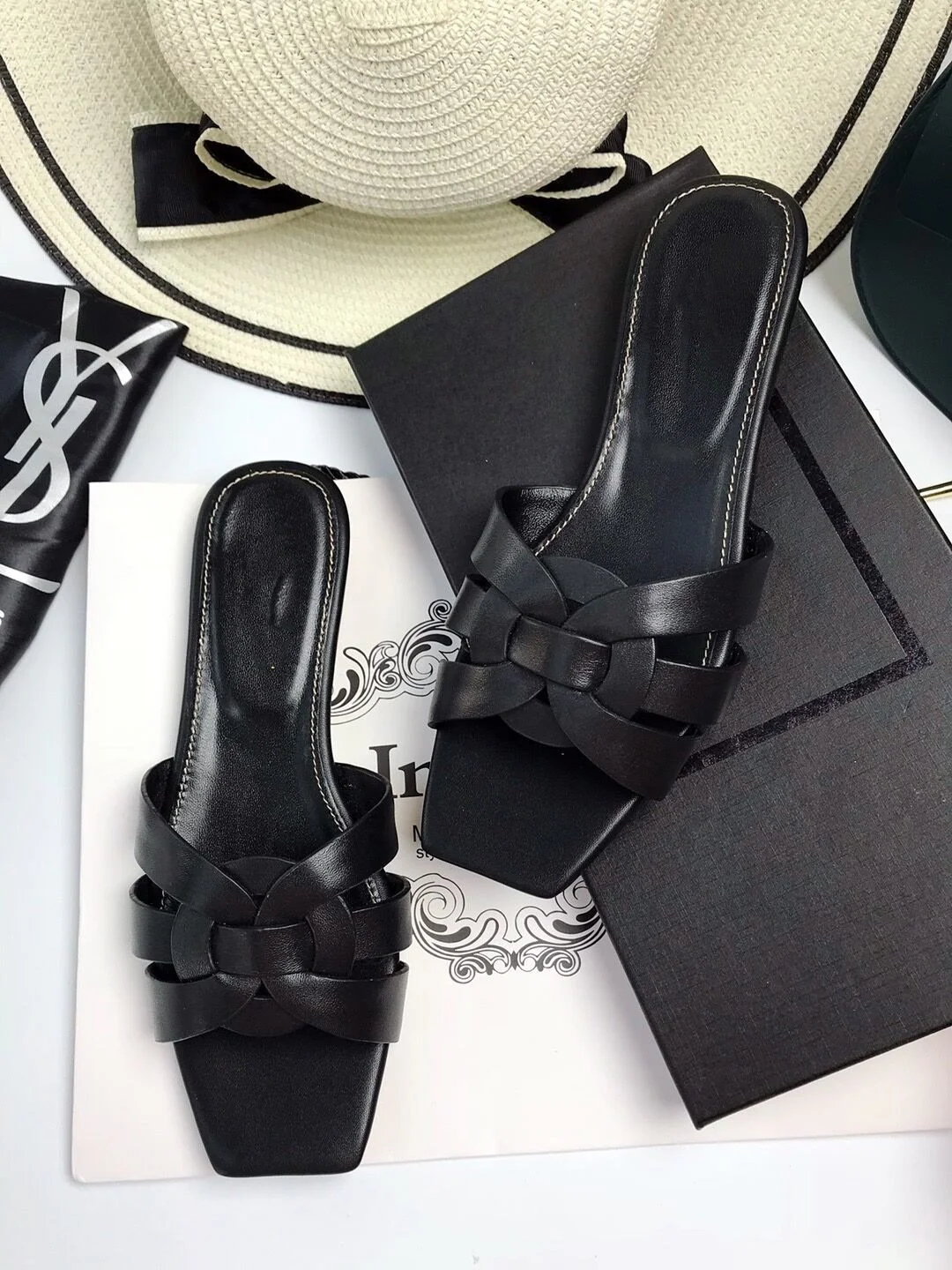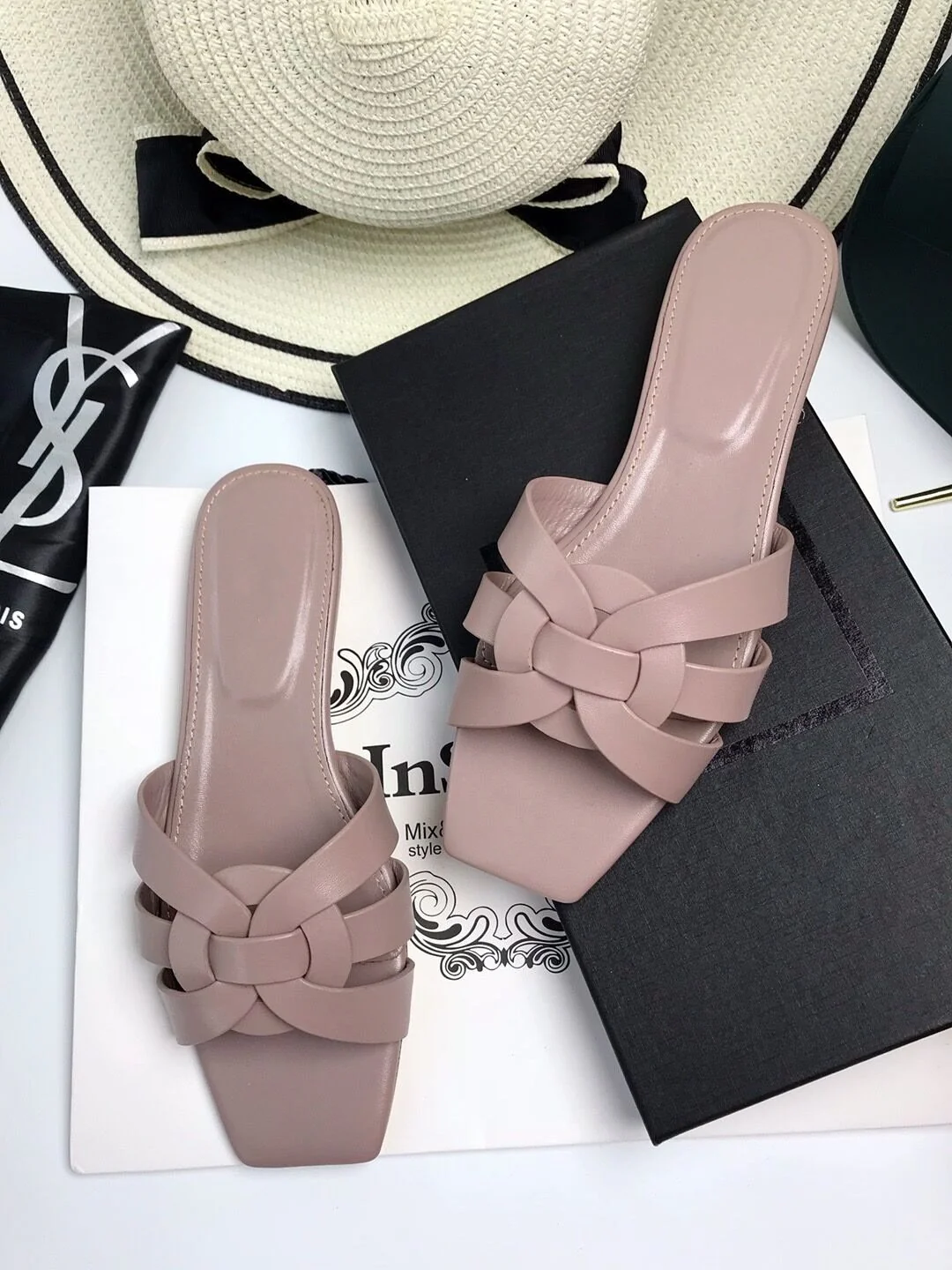 Y Leather Shoes Woven All-match Flat Heel Women's Shoes 1024041119